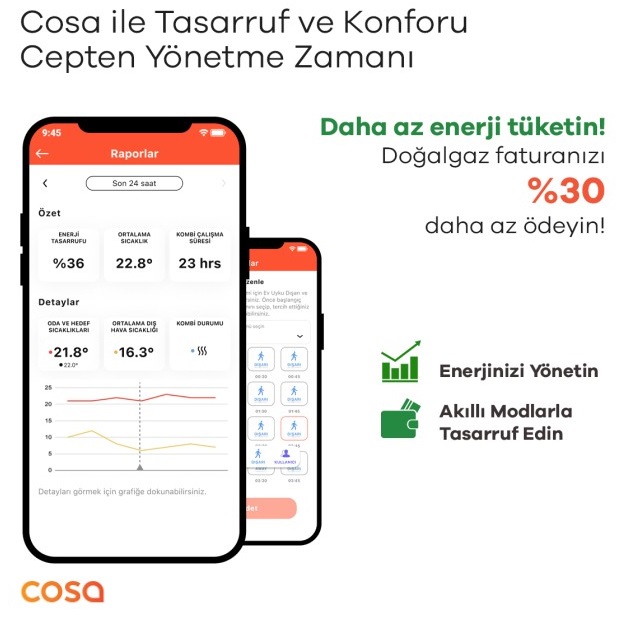 Cosa Akıllı Oda Termostatı ile evinizin sıcaklığını zahmetsizce yönetin, %30’a varan tasarruf sağlayın.